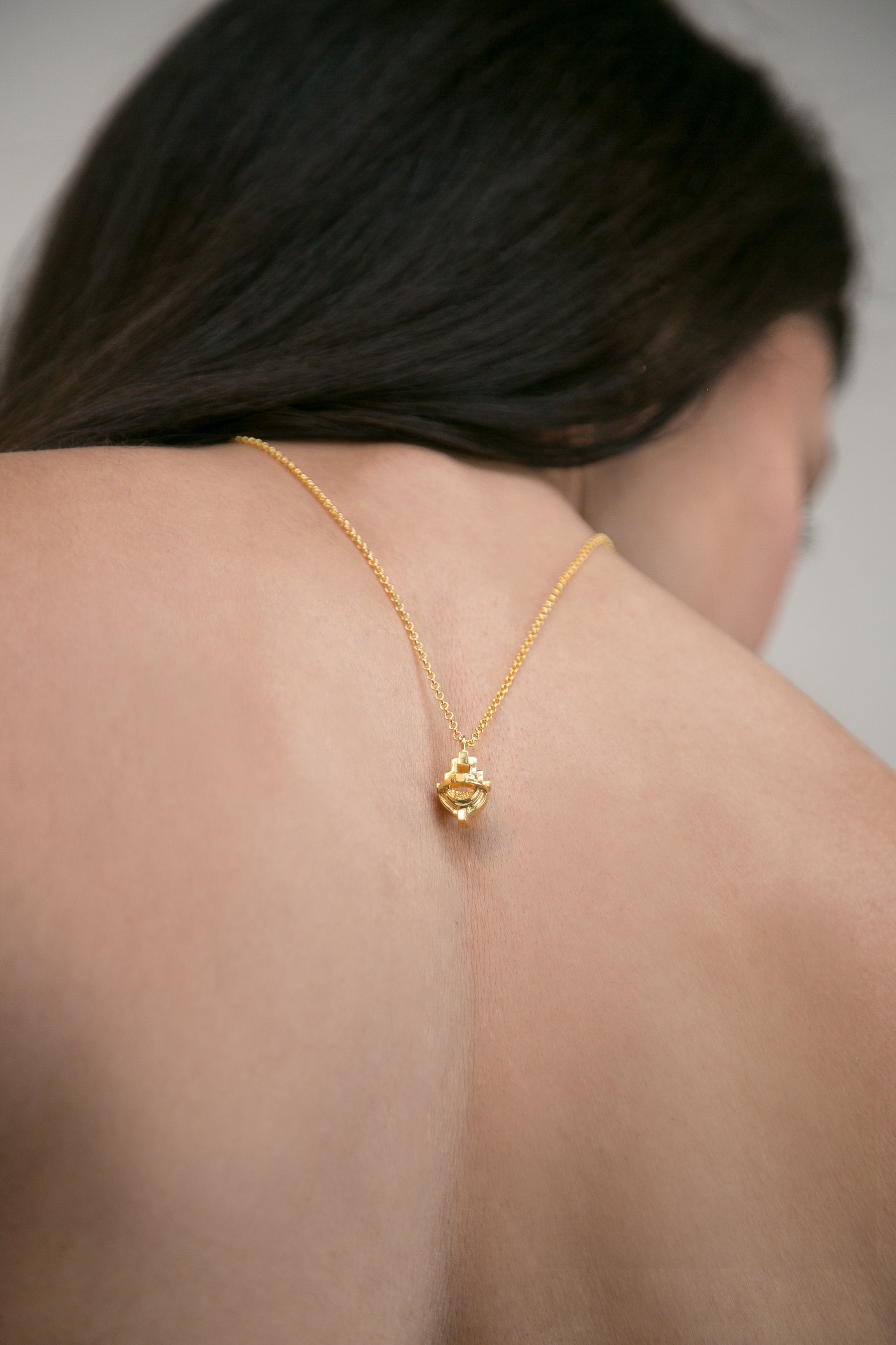 The Ayah Celestial Necklace was created as a symbol of rebirth and transformation, a piece inspired by the loss of my mother and arrival of my daughter, Ayah. She represents a new universe of love, hope, and spirit. Its three dimensional design reflects the eternal orb, the circle of life, and our unbroken connection to the cosmos.
